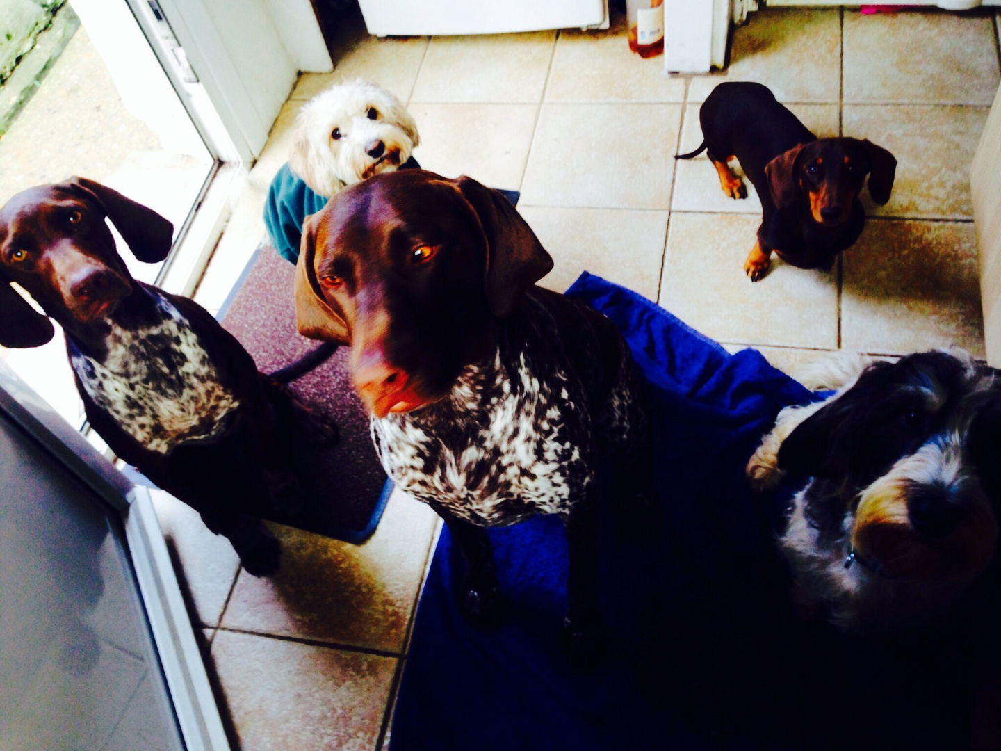 I can board up to two dogs at any one time. Dogs boarding with us is like having a home from home. Your dog will live in the house with me and my two dogs. They do not go in cages, but are free to roam the house and play in the large enclosed garden. They will receive undivided attention, including an one hour walk daily, and lots of cuddles. I provide beds, bedding and blankets and leads for walking. I do ask you to provide the food your dog is normally fed to ensure your dog eats his or her normal diet.